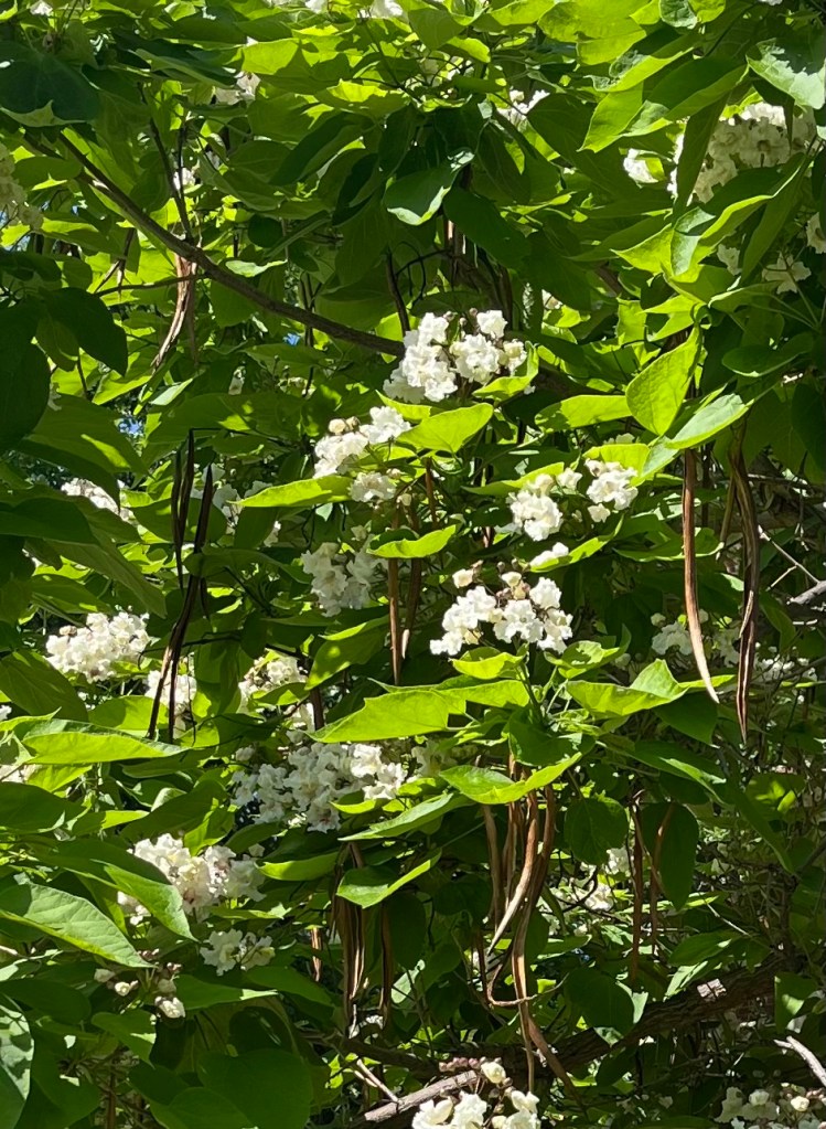 Tuesday was a day to note: This was the first time I’ve made something that truly delights me, that I absolutely love. It’s not perfect, but I love the colors, the looseness, and feeling it gives me. I sat down on a rock in front of a flowering tree and spent the next hour and a half looking, mixing colors, making marks, squinting, and chatting with the instructor as she came by.